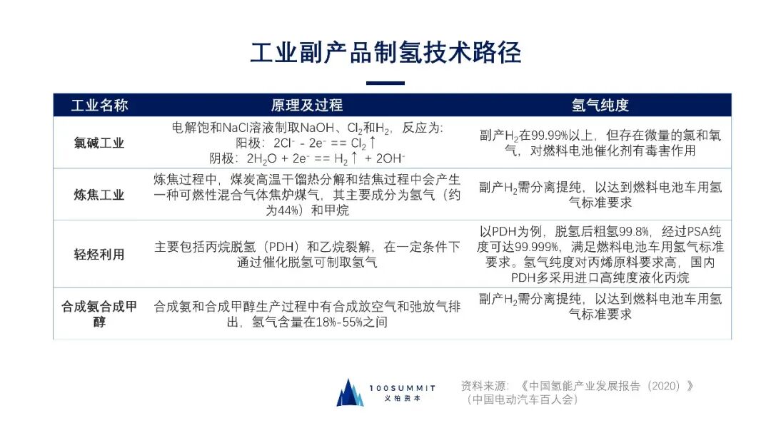 工业副产氢指从氯碱工业、焦炉煤气、轻烃利用(丙烷脱氢、乙烷裂解)、合成氨合成甲醇等化工副产气中提纯制取的氢气;根据《中国氢能产业研究报告(2020)》,当前工业副产氢基本为企业自产自用,较难统计。