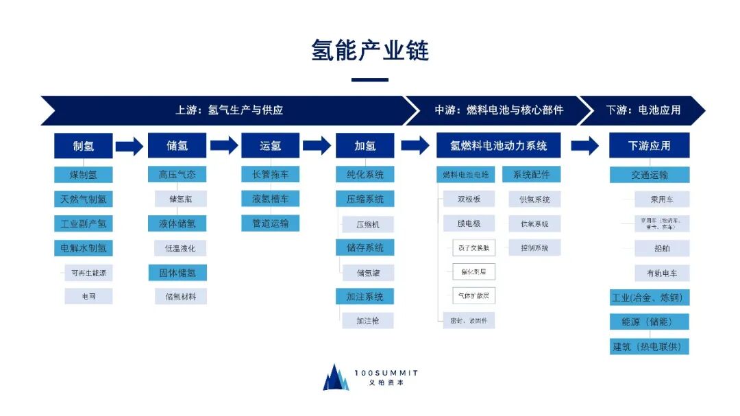 氢能产业链较长,可分为制备、运输、存储、加注和下游应用等多个环节。下面我们分别从各个环节进行回顾与展望。