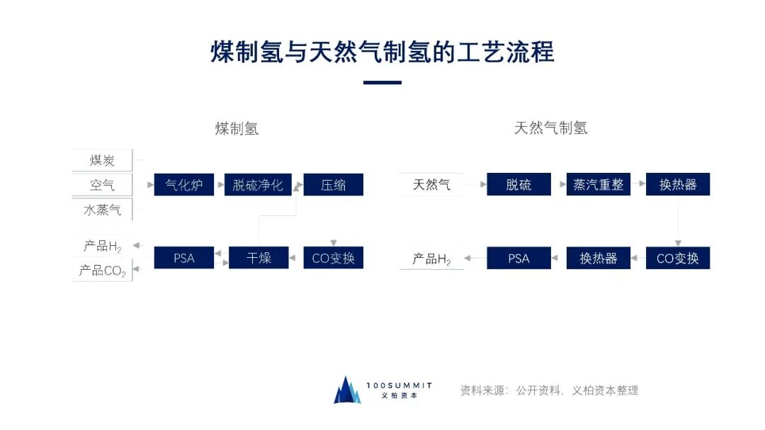 煤制氢是大规模制取廉价工业氢气的主要方式。考虑到我国“富煤、贫油、少气”的能源供应结构,及煤气化的技术成熟度,煤制氢气依旧是目前低成本获取氢气的主要方式,但煤制氢气碳排放强度高(19kgCO2/1kgH2),同碳中和发展方向相违背。