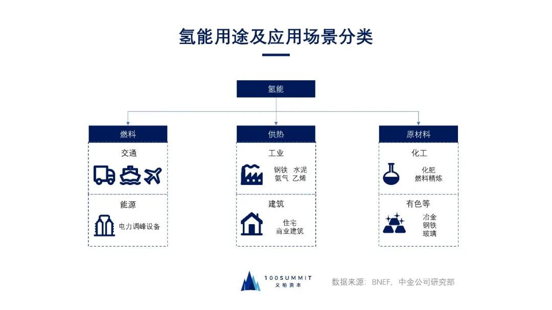 第二类,氢能用来供热。氢气的热值较高,理论上有替代煤炭作为热源的可行性,在钢铁、水泥、陶瓷等传统高能耗工业领域具有很大的发展潜力。在建筑领域,氢气可以与天然气混合使用,未来是少数几种于建筑分布式供暖能与天然气竞争的低碳能源。