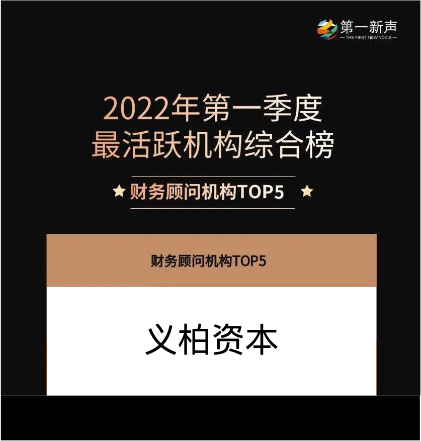 义柏荣誉丨义柏资本荣膺第一新声2022年Q1中国最活跃FA机构TOP5
