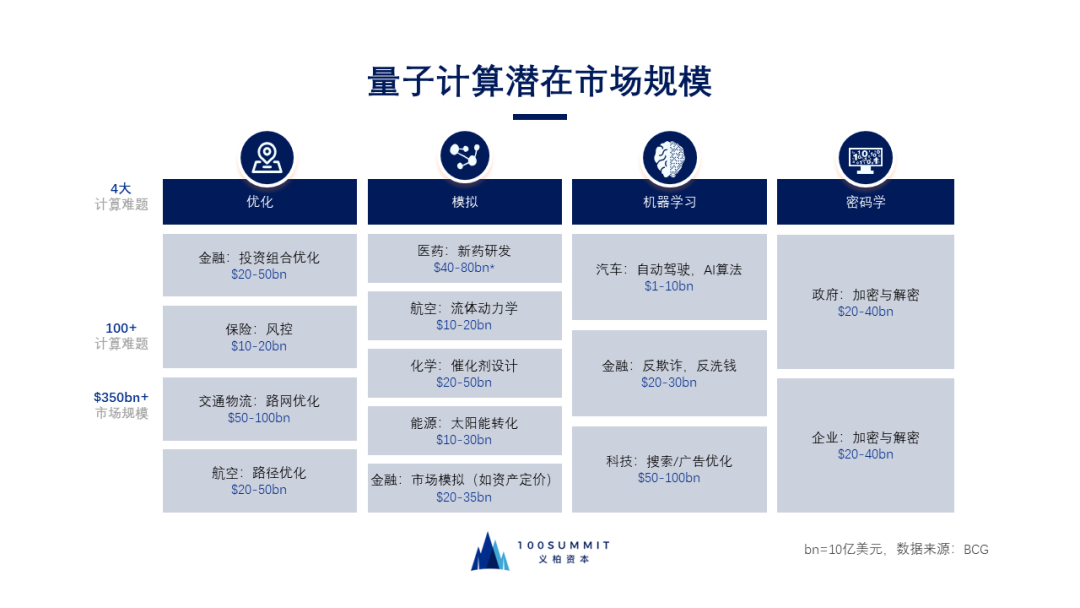 这三个领域均涉及量子计算优化,利用量子计算优化供应链、交通(包括飞机、火车、汽车等)线路和物流,从而降低成本。