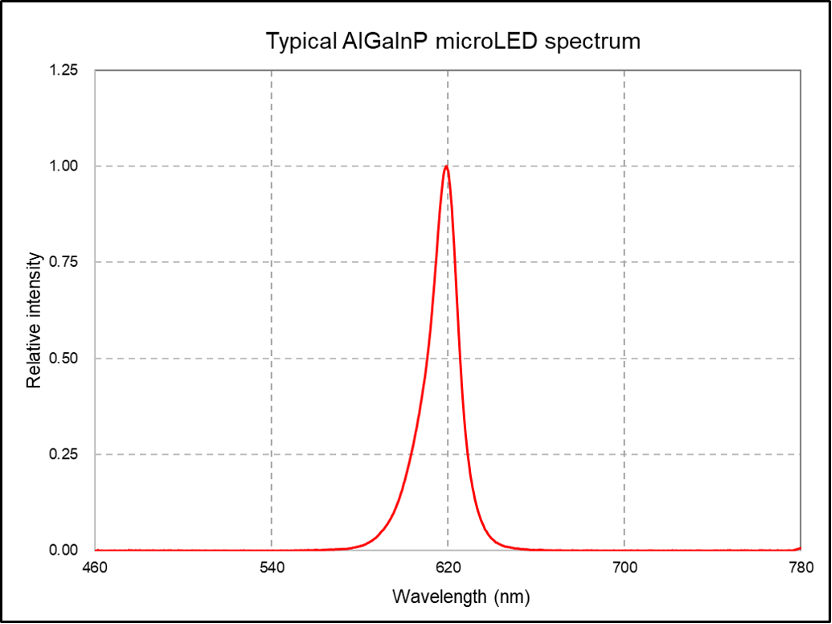 图:典型的AlGaInP LED电致发光光谱,半波宽~15nm