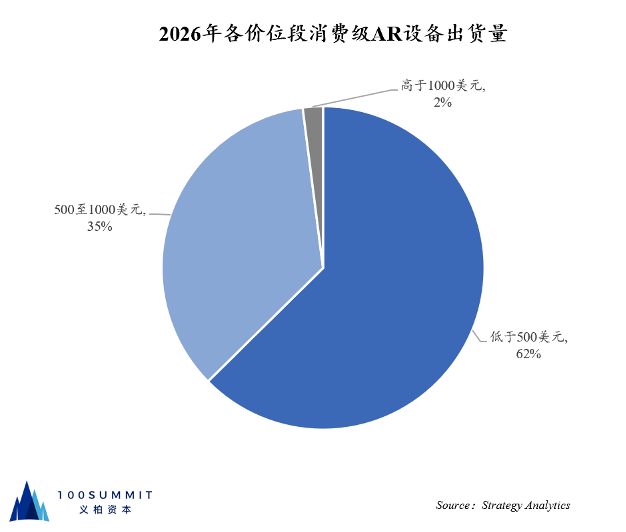 图:预计2026年超六成AR头显价格降低至500美元以下