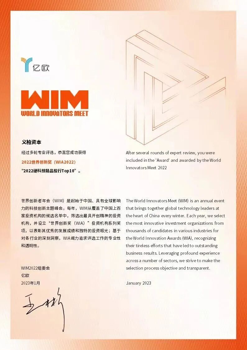 义柏资本感谢亿欧的专业认可,感谢客户和投资人一如既往的支持和信任。征途漫漫,惟有奋斗。义柏资本将不忘初心,持续精进自身,通过助力中国产业科技赋能者的方式,加速推动中国产业科技化的伟大历史进程。