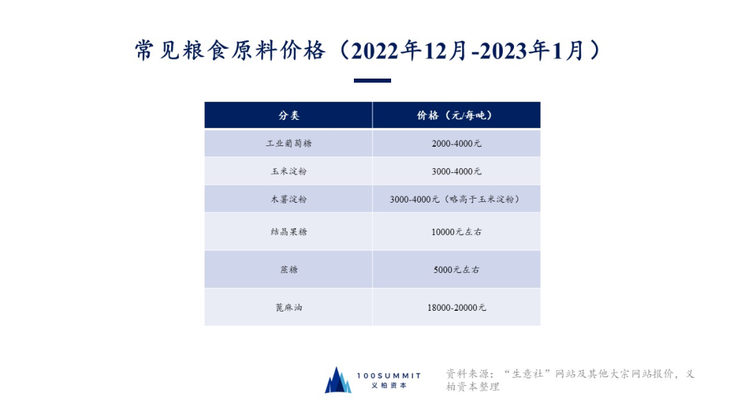 其次,资源约束必然传导至价格。工业葡萄糖的价格约为4000元/吨、玉米深加工而成的果糖价格基本是玉米原料价格的2-3倍,最贵可接近10000元/吨。以农产品深加工产物为碳源,从成本端考虑也无法支持大宗产品的发展。