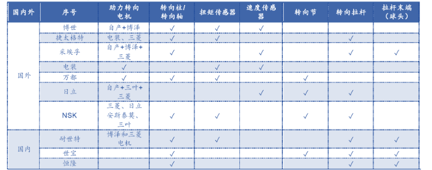 图表:EPS零部件自供情况(未标注内容为无公开资料可查询)