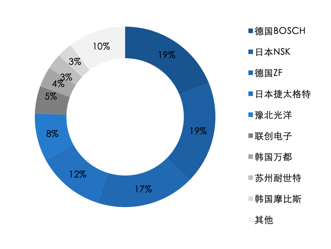 EPS作为汽车底盘核心技术之一,一直被国外零部件巨头垄断。EPS 行业格局集中且技术壁垒较高,由海外巨头博世、采埃孚、捷太格特与耐世特主导。中国EPS转向系统超过80%的市场份额掌握在国际企业手中,中国企业产品与国际企业相比软硬件层面均存有差距。