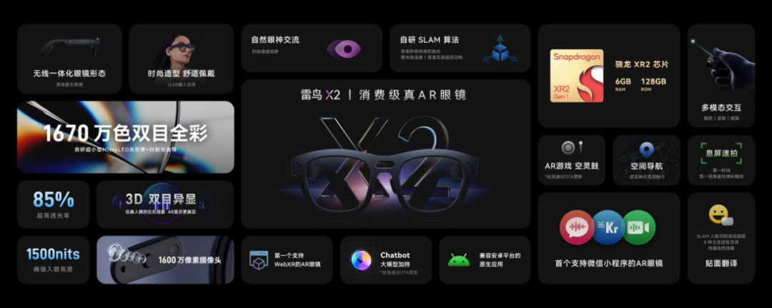 而本次发布会,雷鸟X2是第一款同时具备“3+1”关键要素的消费级真AR眼镜,率先满足了用户更为复杂的使用需求。