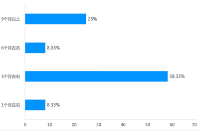 除了数量和金额的变化,项目的投资周期也变得更长。相关调研数据显示,投资周期变长的占比接近60%,9个月以上的项目占比明显多于6个月和1个月。这些数据更为明确的指向一个事实,投资机构出手更加谨慎。