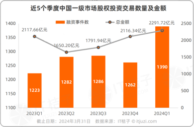 2024年已经进入Q2,从最新数据看,一级市场似乎有了些许复苏的迹象。IT桔子相关数据显示,2024 年一季度,国内一级市场股权投融资事件数有 1390 起,环比增长 10%,同比增长了 14%;估算投资总额约 2291.72 亿元,环比、同比均增长 8%。