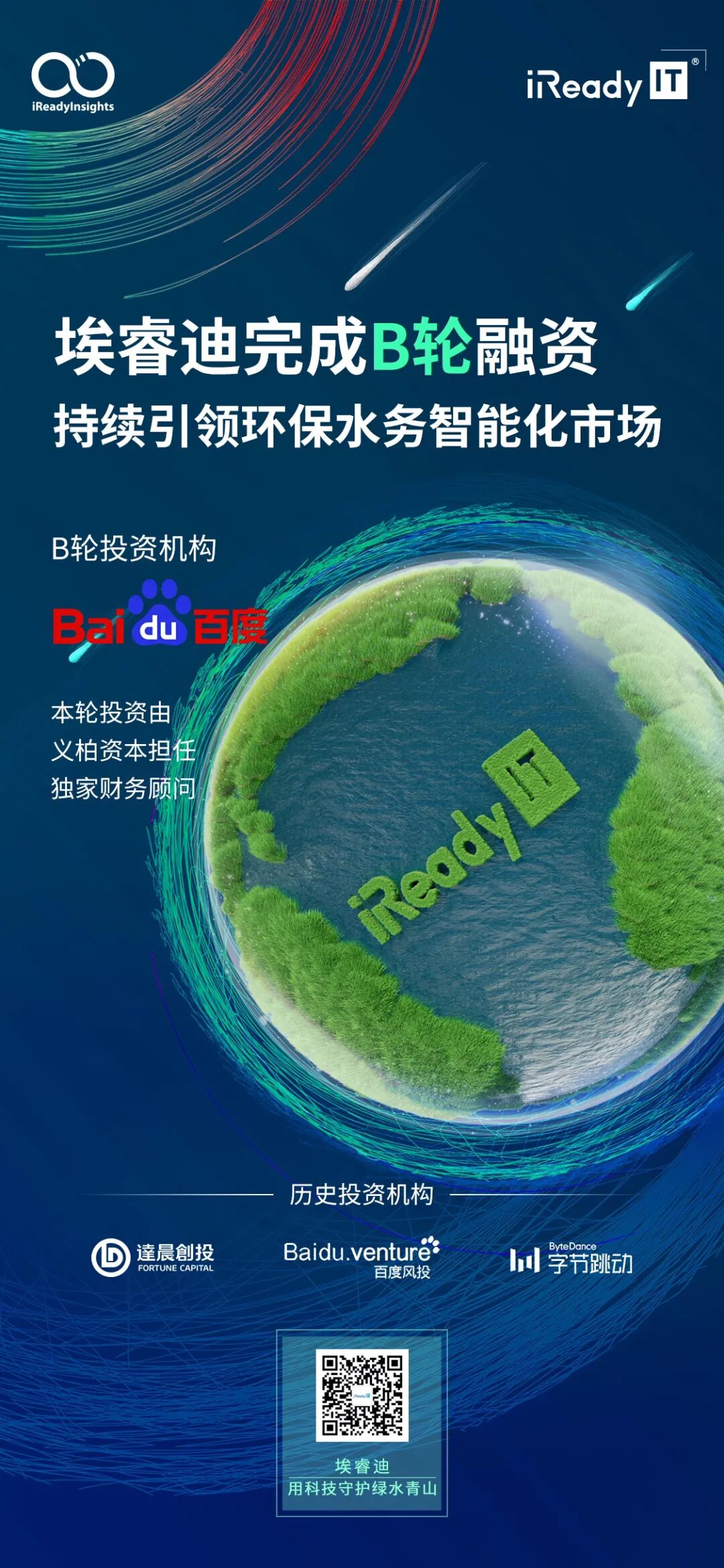 零碳绿色工业互联网平台企业埃睿迪宣布,已完成B轮融资,这是吸引达晨财智、百度风投、字节跳动等投资之后,埃睿迪再一次获得了顶级投资机构的青睐。本轮融资由百度独家投资,义柏资本担任本轮独家财务顾问。环保水务智能化市场最“豪华”的投资机构阵容,充分验证了资本市场对埃睿迪能力和价值的高度信心。本轮投资将全面助力埃睿迪持续引领环保水务智能化市场。