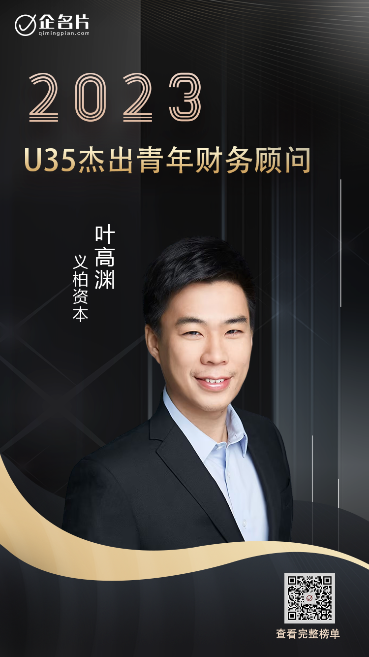 义柏荣誉|义柏资本合伙人叶高渊上榜「企名片」2023中国40位U35杰出青年财务顾问