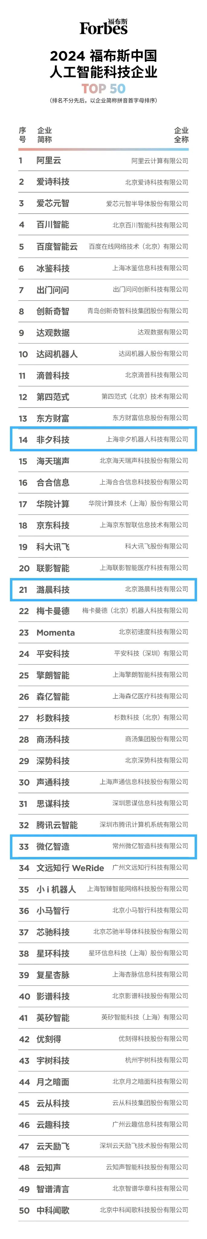 其中,义柏长期合作伙伴「非夕科技」、「潞晨科技」、「微亿智造」三家企业,获“福布斯中国人工智能科技企业TOP 50”称号;同时,「非夕科技」荣登子榜单“人工智能创新技术评选企业TOP 10”。更多榜单详情,可点击这里查看。