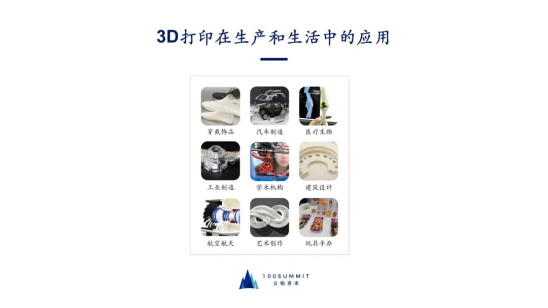 3D打印是一个快速成长中的赛道,下游场景已多点开花,广度上向消费、生产各环节开始渗透,深度上已不局限于小批量、定制化开发,开始向更后端的工业应用辐射;