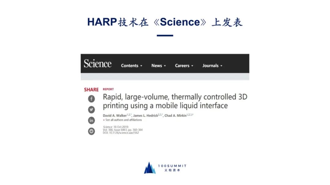 2019年,另一项高速3D打印技术又登上了《Science》:高速大尺寸3D打印技术(HARP)。运用这项技术,快速打印出成年人身形大小的物品也不再是问题。
