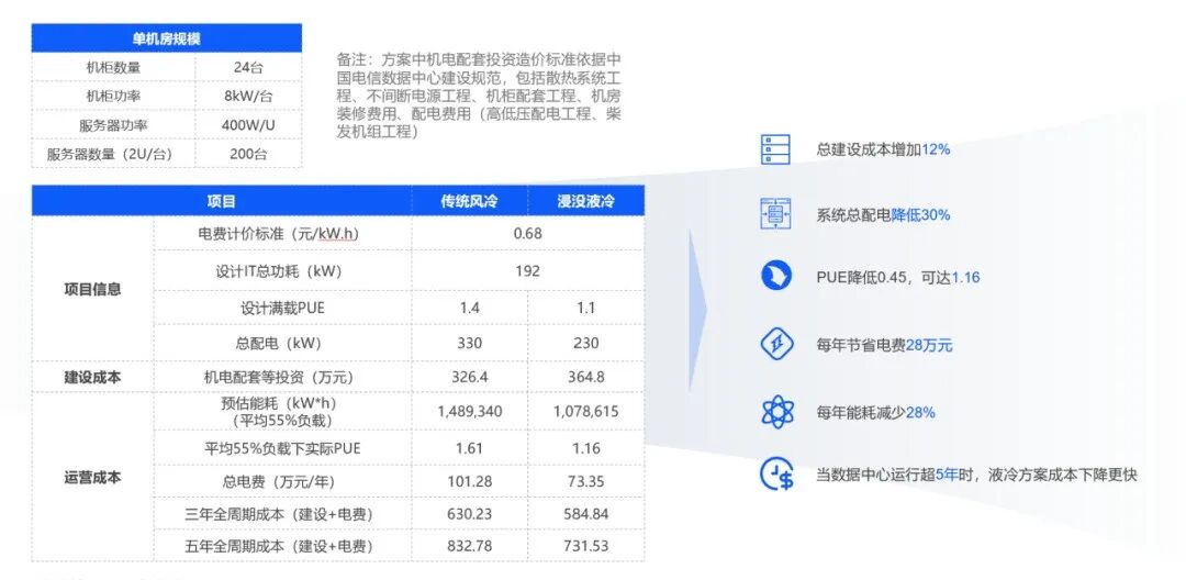 注:以下测算假设一个单机架功率密度为10kW,总容量为2兆瓦的数据中心