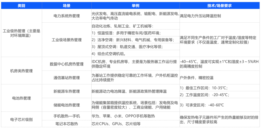 千亿温控市场,应用场景呈现多样化,不难发现每个细分领域的客户需求差异化较强、温控方案较多、技术路径较多。