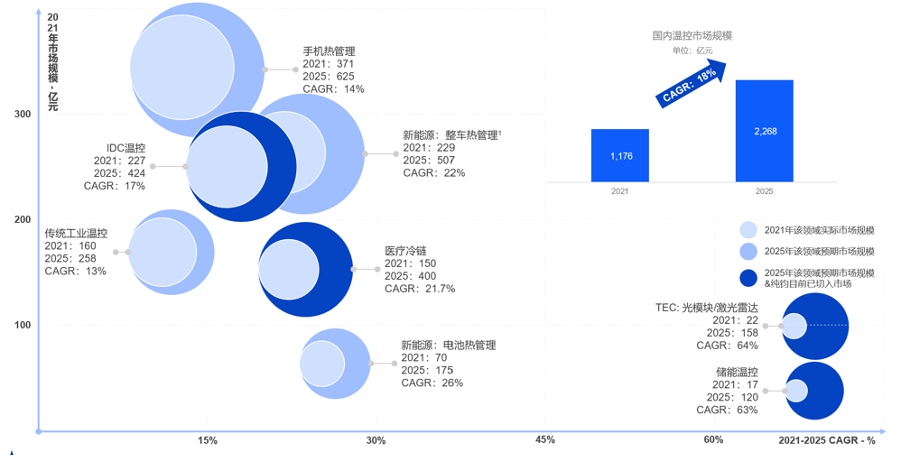 中国温控市场存在千亿级机会,细分领域均有百亿级机会